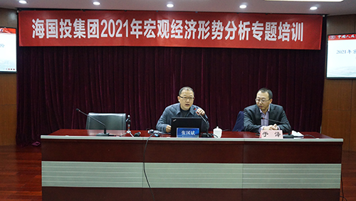 為幫助集團(tuán)領(lǐng)導(dǎo)干部更好地把握當(dāng)今宏觀經(jīng)濟(jì)形勢(shì),促進(jìn)集團(tuán)持續(xù)、健康、穩(wěn)步發(fā)展,海國(guó)投集團(tuán)于2月27日上午在鑫泰大廈報(bào)告廳舉辦了2021年宏觀經(jīng)濟(jì)形勢(shì)分析專(zhuān)題培訓(xùn)。集團(tuán)總部領(lǐng)導(dǎo)班子、各部門(mén)負(fù)責(zé)人、一級(jí)監(jiān)管企業(yè)領(lǐng)導(dǎo)班子共70余人參訓(xùn),海國(guó)投黨委書(shū)記張國(guó)斌主持本次培訓(xùn)。